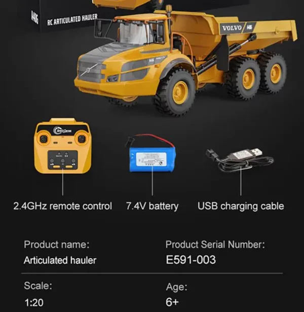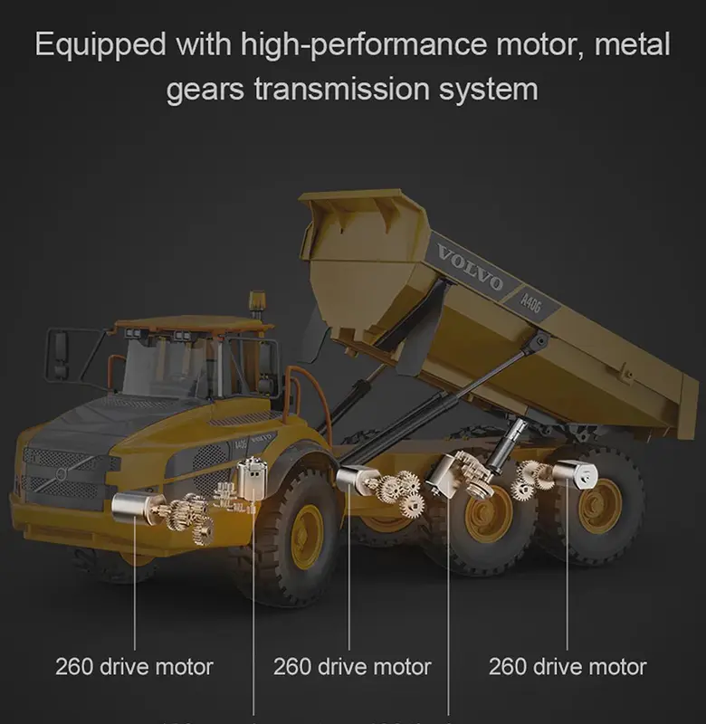 Of je nu je eigen RC-collectie wilt uitbreiden of op zoek bent naar een krachtige en gedetailleerde kipper, de Double E Volvo A40G E591-003W levert topprestaties op elk terrein.